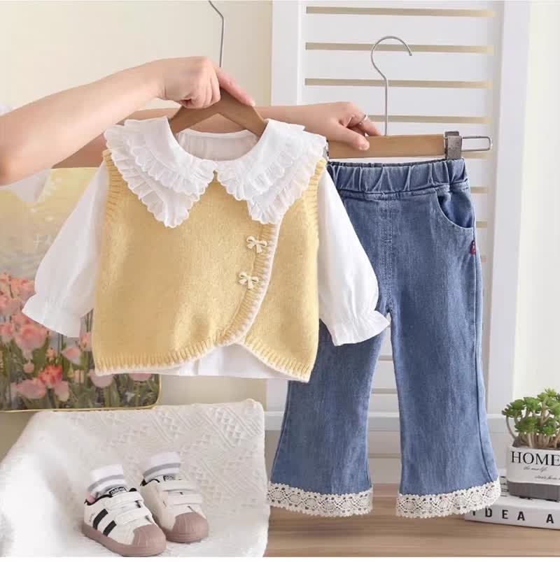 Cute bow denim set 3pcs